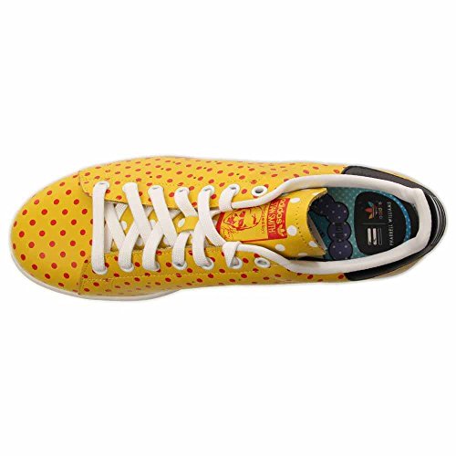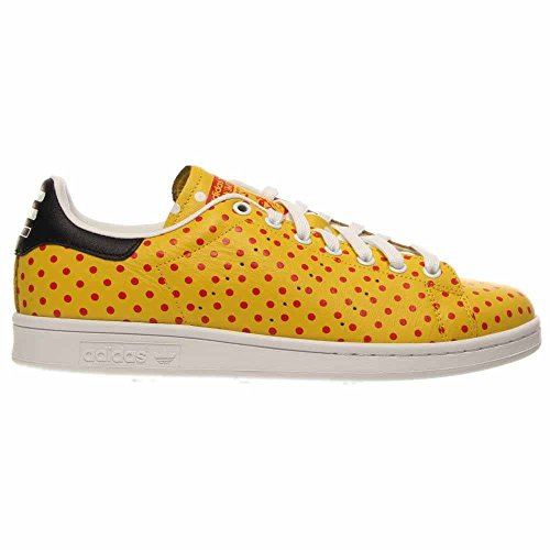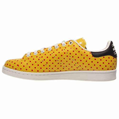 Product Description The Adidas Originals Pharrell Stan Smith Polka Dot Mens Tennis Shoes are composed of a soft premium leather upper. Padded tongue and terry sockliner provides added comfort. Rubber outsole adds traction and stability on surfaces. Yellow/Red-Future White 0