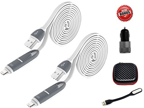 -. Feature : Newest Design: Combines the function of lightning and micro USB together into one simple and innovative connector. Compatible with IPHONE and ANDROID system and all USB version perfectly, one side for ISO, the other for ANDROID, both sides can support power charging and data transmission(Android). / 2.4A charging and sync data cable up to 500Mbps transfer speed provide fastest charging and data transferring speed. Stainless Steel connector resist corrosion and make by TPE material. / Flat noodle design with Environmental friendly TPE material is flexible to be coiled for portable carrying but tangle-free indeed. 2 pack 1-meter-long cable good for usage while charging indoor and outdoor. / Bouns 1) Dual USB Car Charger: The dual smart USB ports are using Smart IQ Technology to identify all mobile and other devices. Smart IQ USB jack to protect from Over-current, over-charging and short-circuit. / BONUS ITEMS - Best Value For Money Guaranteed [AP.R.IL SPECIAL DISCOUNT MAX 30% CASH BACK DISCOUNT AFTER PRUCHAED AND SEND US MESSAGES]