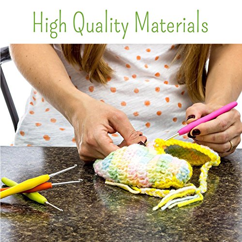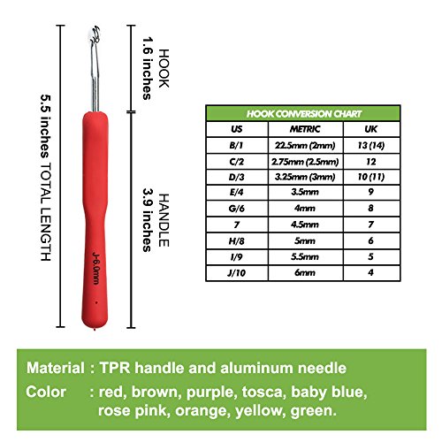 HIGH-QUALITY MATERIAL – Made of TPR for the soft handle and aluminum for the hook handle, this crochet hook set offers you sturdy and long lasting crochet hook with comfortable usage also.