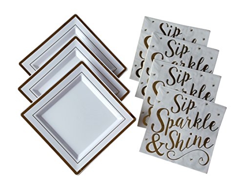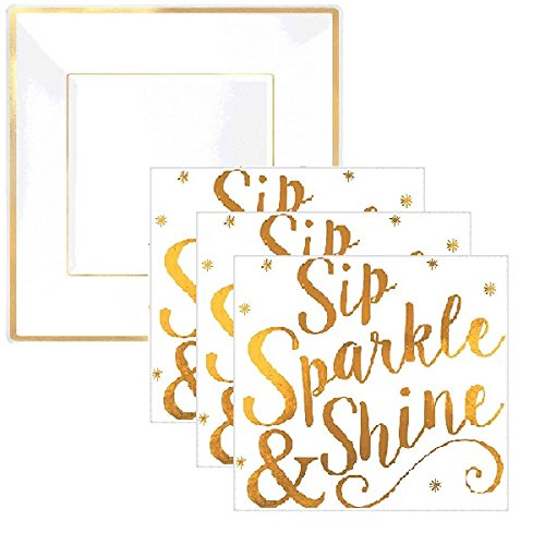 Gold Sparkle Party Plates and Napkins - Serves 16 Guests