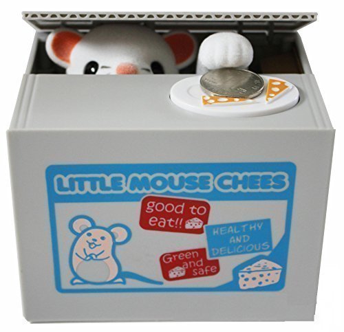 Studio : W.D Publisher : W.D Binding : Toy Product Description Product Advantage: ^-^: Accepts virtually all coins. ^-^: The stealing coin Mouse box holds approximately 40 coins. ^-^: One of the most adorable coin banks in the world, greatly help child to develop a good habit of saving money. ^-^: It can also be used to adorn your home, desk, table, or child's room. ^-^: The perfect gift for any child and will even bring you so much enjoyment seeing them fall in love with their new favorite toy. How to use: 1: Once you putting your coins on the button, it will take your money away secretly. 2: You only need to put a coin on the tray and then the Mouse will sneak out of the box while the lid is closed,place a coin on top of the white plate. 3: Watch as the lid opens to reveal the cute little Panda who peeks out, then snatches the coin with his paw. 4: They move so realistic, you can watch them eat over and over. 5: At the bottom of the box there is a twist latch that you open to get back all the money you have saved up. Specifications: -- Weight : 0.50 kg -- Packing: color box -- Size:About: 3. 74"*4. 52"*3. 54". -- Material: ABS electronic components. Packing Include: 1* Product operation manual. 1* Lucky Mouse coin bank money box. 0