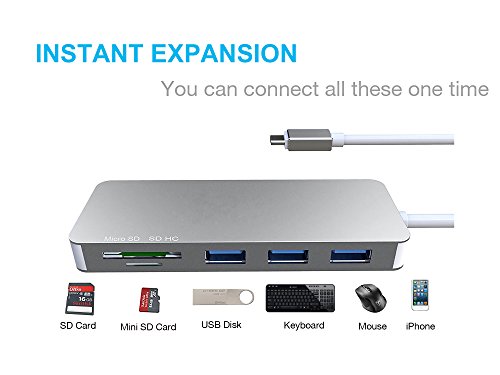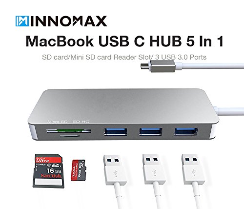 Provide Instant Expansion Solution: INNNOMAX MacBook 5 N 1 USB type C Hub will Expand one type C port on your device to be Three USB 3.0 ports, One SD( Support SD/ SDHC/ SDXC) and One Micro SD( Micro SD/ T- FLASH)card slot. INNOMAX MacBook USB C HUB allow you to connect Camera SD card/ Cellphone Mini SD Memory card, USB mouse, USB wireless mouse Adapter, U Disk etc with your New MacBook in One time.