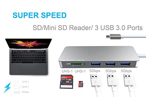 MacBook USB C Adapter,Macbook USB C Hub, InnoLife@ MagicHub USB Type C Hub(Silver) with Mini SD Card Reader, SD Card Reader, 3 USB 3.0 Ports for 2016 NewMacBook,Chromebook Pixel, and more