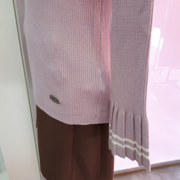 소매단의 주름포인트와 배색처리된 네크라인이 베이직하면 여성스러운?입니다