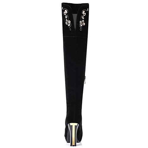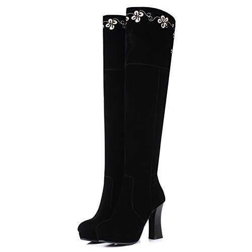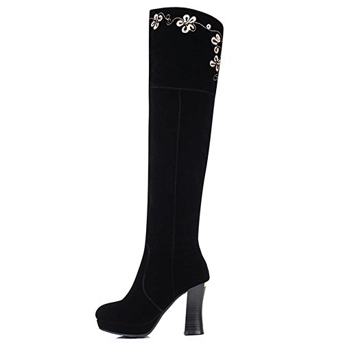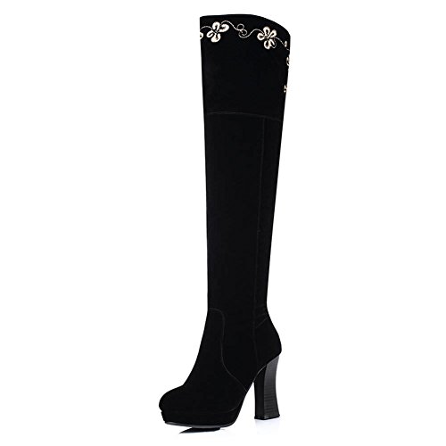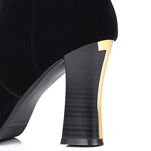 (DecoStain)/Women's/Boots/DIRECT FROM USA/DecoStain Women's Nubuck Leather Block Heel High Heel Boots