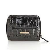 SAMANTHA BROWN CASH CARD COIN LEATHER ACCORDIAN WALLET - CROCO EMBOSSED WALLET - BLACK