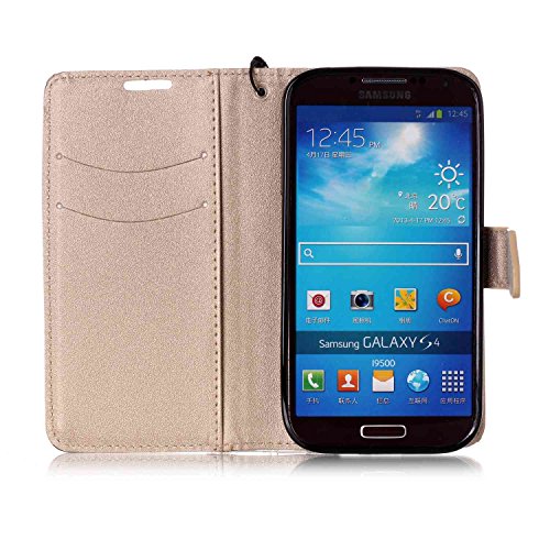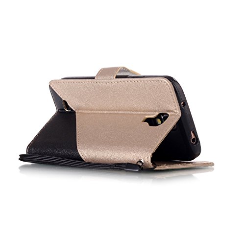 S4 Case,Galaxy S4 Wallet Case,Galaxy S4 Flip Case,PHEZEN Elegant Two-color Design Book Style PU Leather Magnetic Flip Cover Protective Case with Card Slots for Samsung Galaxy S4, Black + Gold