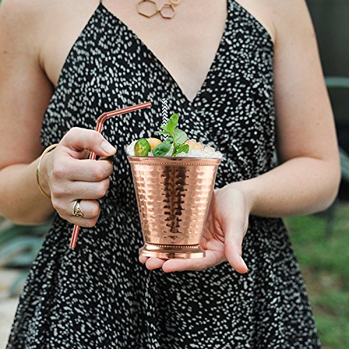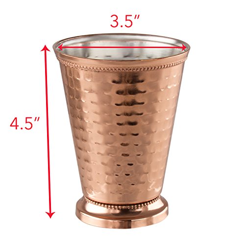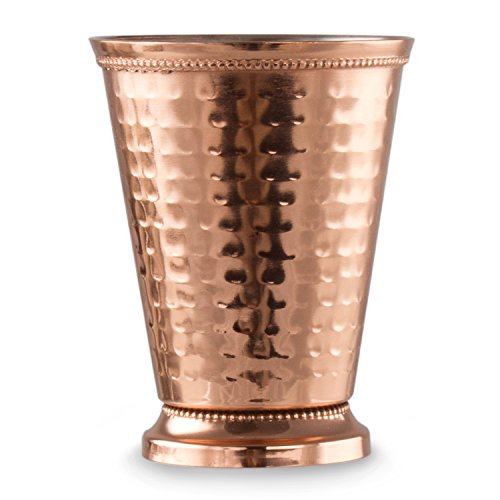 Studio : Imperial Home Publisher : Imperial Home Product Description This high quality stainless steel mint julep cup is great for creating your favorite southern cocktail. Make the mint julep while watching the Kentucky Derby or for a fun gathering. The cup has a 12 ounce capacity with a stylish hammered look on the exterior. Julep glass is machine wash safe. Mint Julep glasses measure 4 inches in height and 3.5 inches in diameter. 0