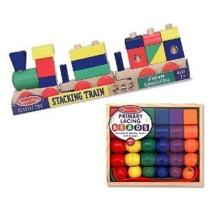 -. Title : Preschool Boy Lacing Stacking Gift Set P.R.Imary Lacing Beads and Stacking Block Train By Melissa and Doug