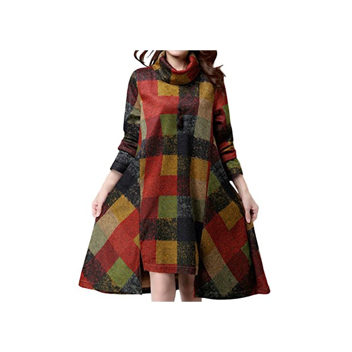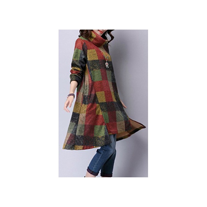 원본상품명: (モモチ) momoti 秋冬 カラフル チェック 長袖 チュニック レイヤ?ド ワンピ?ス レディ?ス チュニック ゆったり 大きい サイズ ハイネック (L, グリ?ン)