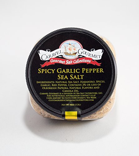 Caravel Gourmet Spicy Garlic Pepper Fine Sea Salt, 4 Ounce Stackable Jar