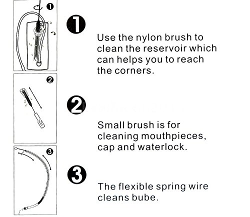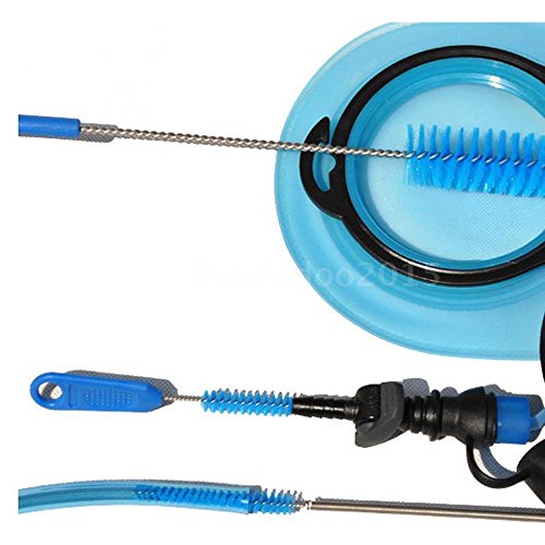 -. Feature : Main material: Nylon + PP / Big brush to clean the reservoir. / Small brush to clean the bite valve. / Long spring wire brush to clean the tube / Folding rack helps to dry your bladder after cleaning