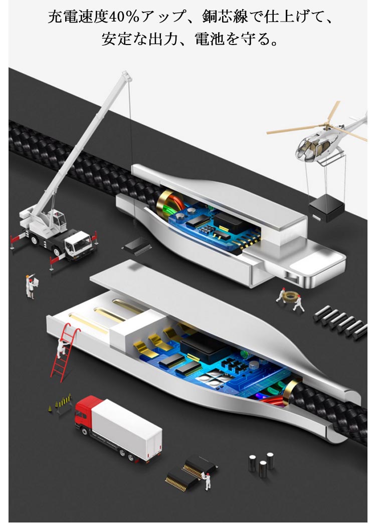 | 充電・データ転送ケーブル★ 強化保護★内部で接着し、断線・短路防止を工夫し、根元部にも耐久性を考慮した一体加工にしています★ | |