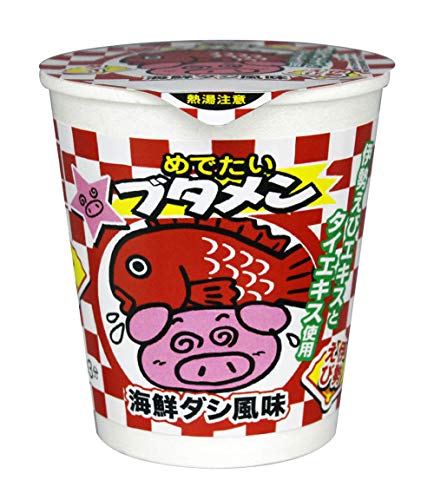 原材料:油揚げめん(小麦粉(国内製造)、植物油脂、食塩、タイエキス、伊勢えびエキス、卵白)、粉末スープ(砂糖、食塩、デキストリン、えびパウダー、コーンスターチ、粉末みそ、酵母エキスパウダー、かつおぶしパウダー)/加工デンプン、調味料(アミノ酸等)、かんすい、香料、着色料(クチナシ)、香辛料抽出物、糊料(グァーガム)、酸化防止剤(ビタミンE)、(一部に卵・小麦・えび・かに・大豆を含む)※本製品製造施設では、乳、そば、落花生、かにを含む製品を製造しています。