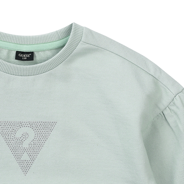 드랍소매에 여유있는 핏으로 구성되어 있는 맨투맨입니다. 소프트한 칼라감과 게스 로고를 핫픽스로 표현하여 은은한 반짝임으로 포인트가 있는 아이템입니다. 데님 스커트나 스키니 팬츠,오버롤 팬츠와 함께 코디하시면 러블리 하면서 캐쥬얼한룩을 연출하실 수 있습니다. ( 구리점 / 19년도 봄상품 )