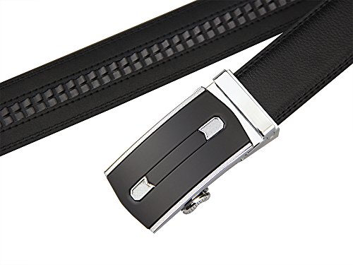 Just slide the dress belt into the sliding buckle and pull the ratchet belt through, the nice belts buckle simply auto locks the automatic belt, to release the belt, gently push the lever on the side of the removable buckle and lock will snap.