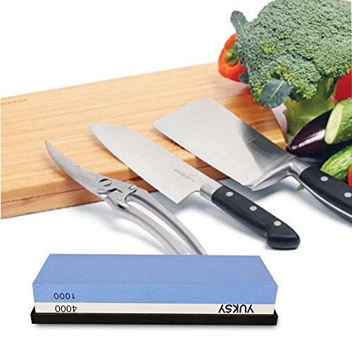Premium Knife Sharpening Stone, 2 Side 1000/4000 Grit Whetstone, Best Kitchen Blade Sharpener Stone with Rubber Holder, Best for Kitchen & Outdoor Knives etc.