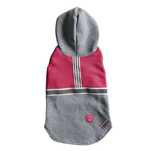 Pawow Dog Sweatshirt Hoodie Coat Pet Puppy Clothes with Reflective Stripe, Pink, Small