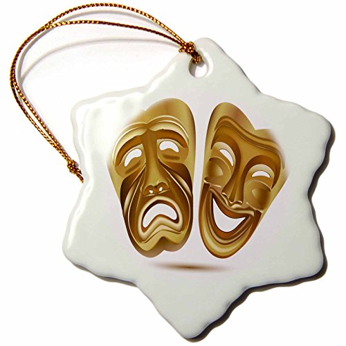 3dRose orn_111535_1 Two Gold Drama Masks Snowflake Ornament, Porcelain, 3-Inch