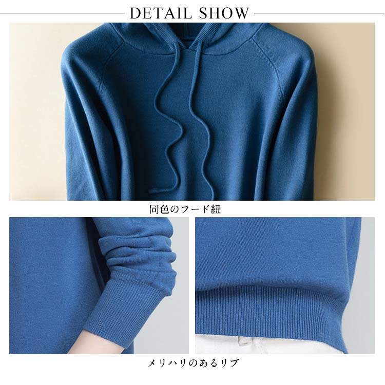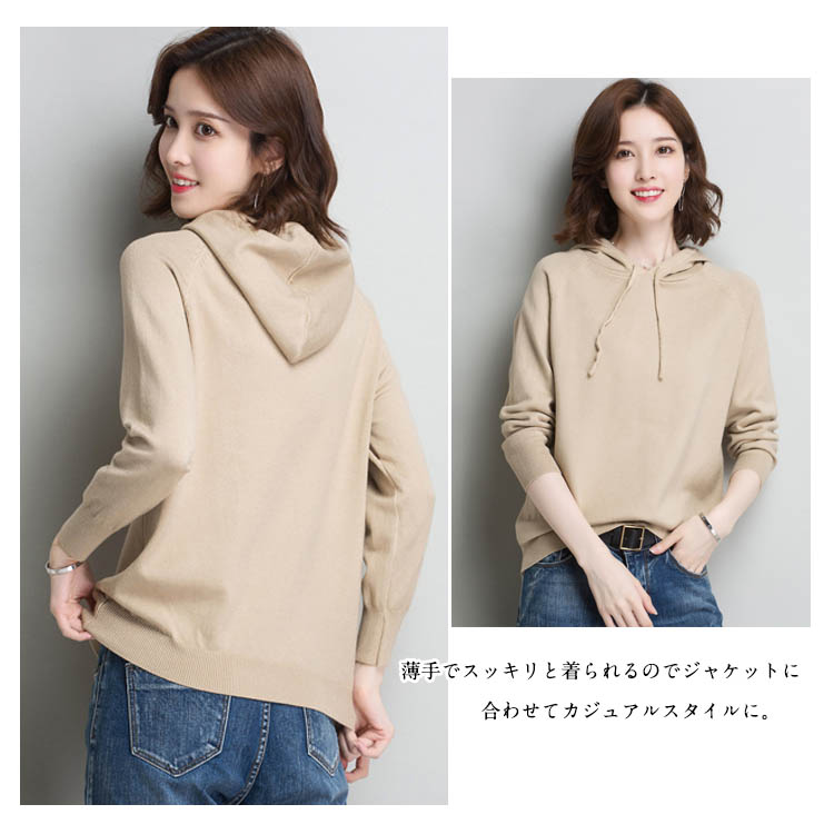 | 今シーズン大注目のニットパーカーです。ラグランショルダーがこなれ感を演出し、柔らかなニット生地で着心地が良いのもうれしいポイント。薄手でスッキリと着られるのでジャケットに合わせてカジュアルスタイルに。裾リブでしっかり留まるのでフレアスカートやデニムを合わせるのがオススメ。パンツともスカートとも好相性のプルオーバーは、ワードローブのスマートアイテムです。 | |