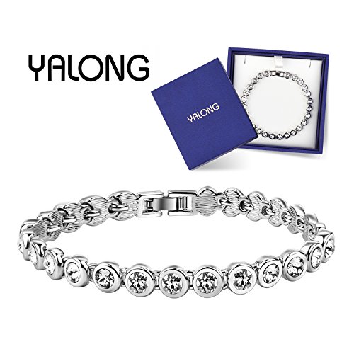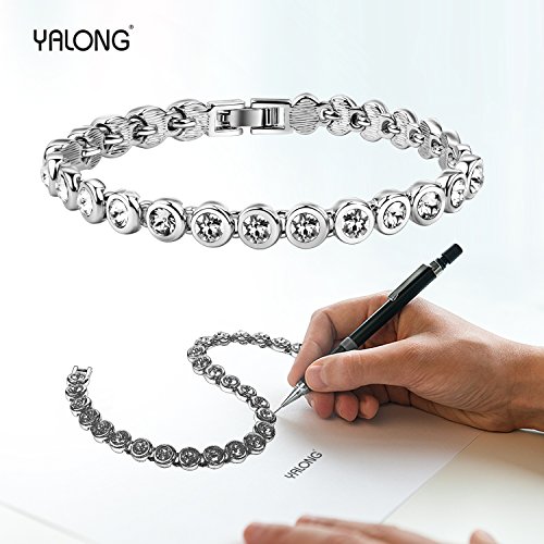 SPECIFICATION: Size-7.5 inch in total length, fit for most wrists; 0.25 inch in width; and the Crystal width is 0.16 inch; Material: Made with Swarovski Crystals and Rhodium (known as white gold) plated, all environmentally friendly materials, passed 3rd Party SGS Inspection Standard, feel free to wear