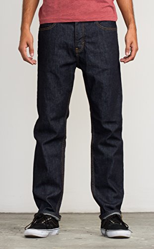 -. Binding : Apparel -. Brand : RVCA -. Department : mens -. Feature : Standard fit stretch denim pant / Zipper fly closure with RVCA logo shank / RVCA woven label at coin pocket / VA embroidery at back pockets / Back patch pockets -. Label : RVCA Young Men's -. Manufacturer : RVCA Young Men's -. Model : MCDP08NE-DI -. PackageQuantity : 1 -. ProductGroup : Apparel -. ProductTypeName : PANTS -. Publisher : RVCA Young Men's -. Studio : RVCA Young Men's -. Title : RVCA Men's New Normal Jean Deep Indigo