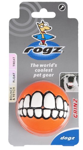 -. Title : Rogz Grinz Medium 2.5" Dog Ball Treat Toy, Orange