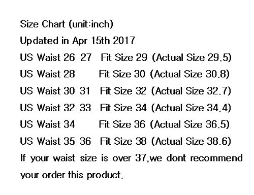 Product DescriptionSize Measurement:(inch) 29:Waist--28.87 Hip--39.37 Length--22.44 30:Waist--30.18 Hip--40.55 Length--22.83 31:Waist--31.50 Hip--41.73 Length--23.22 32:Waist--32.80 Hip--42.91 Length--23.62 34:Waist--34.12 Hip--44.09 Length--24.01 36:Waist--36.01 Hip--44.88 Length--25.19 38:Waist--38.01 Hip--45.67 Length--25.98 Due to manual measurement, please allow will be 0.5-1.0inch/1-3cm error0