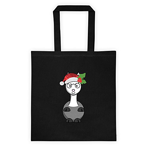 Binding : Apparel Product Description This cotton canvas tote bag is both stylish and practical. ? 6 oz, 100% cotton canvas ? 22" dual handles ? Dimensions: 14 ½" x 15 ½" xmas santa claus alpaca ,-----------SEQUINS ARE ONLY A PRINT,NO GLITTER !-----------holly ,ugly christmas,funny holidays cute baby llama red white green grey gray 0