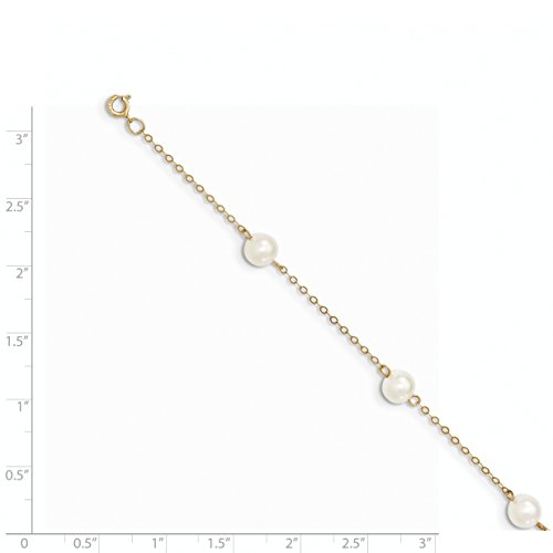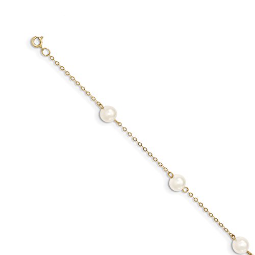 ICECARATS DESIGNER JEWELRY 14K YELLOW GOLD 7MM WHITE FRESHWATER CULTURED PEARL 6 STATION ANKLET FOR WOMEN ANKLE BEACH CHAIN BRACELET