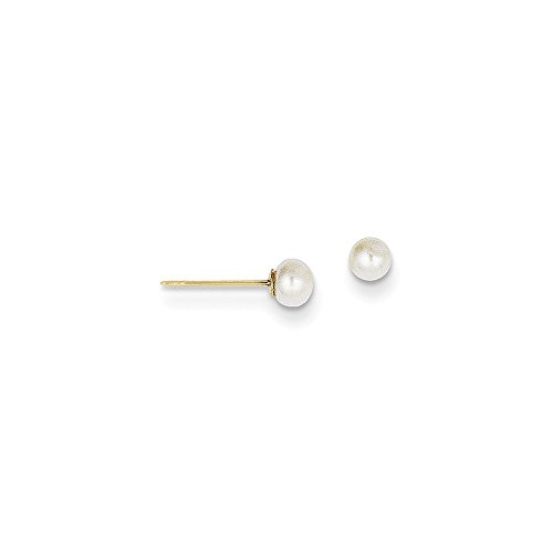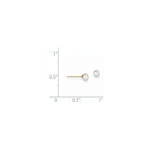 Solid 14k Yellow Gold 3-4mm White Button FW Cultured Pearl Stud Earrings