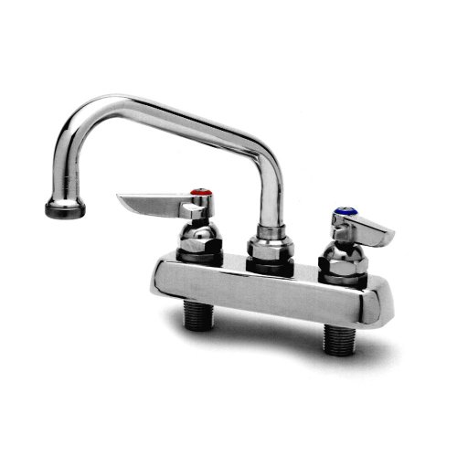 T&S Brass B-1113-XS Work Board Faucet, Deck Mount, 4" Centers, 12" Swing Nozzle, Lever Handles, 2" Shank