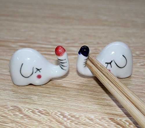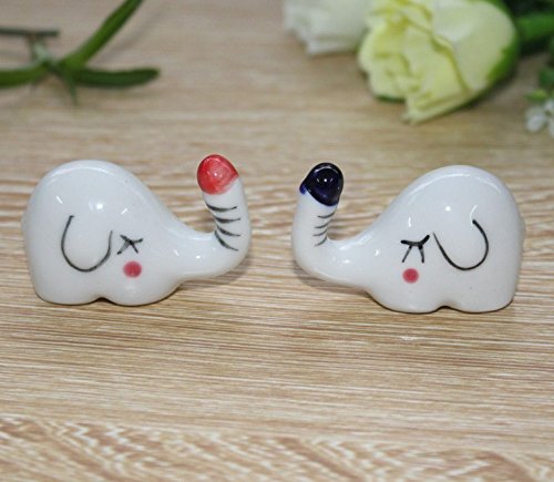 Shihua Chinese Ceramic Elephant Pattern Chopsticks Rest Spoon Fork Knife Holder Rack Practice Furnishing Articles (6 Pcs)