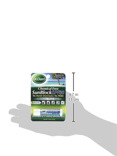 -. Binding : Health and Beauty -. Brand : Dr. Dans -. EAN : 0832709000032 -. Feature : protects your lips and helps to keep them soft all at the same time / contains all hypoallergenic ingredients that limit the chemical irritation produced by other sun blocking lip balms / Protect your lips from the harmful rays of the sun and the side effects of sun burn and cancer / natural yellow wax and chemical-free base with the antioxidant Vitamin E combine to create the perfect moisturizing combination. / 100% money back guarantee! -. IsAdultProduct : 0 -. Label : Everready First Aid -. Manufacturer : Everready First Aid -. MPN : unknown -. NumberOfItems : 1 -. PackageQuantity : 1 -. PartNumber : unknown -. ProductGroup : Health and Beauty -. ProductTypeName : HEALTH_PERSONAL_CARE -. PublicationDate : 2015-06-30 -. Publisher : Everready First Aid -. ReleaseDate : 2015-06-27 -. Studio : Everready First Aid -. Title : Dr. Dans Chemical Free Sunblock SPF 30 Lip Moisturizer and Protection -. UPC : 832709000032