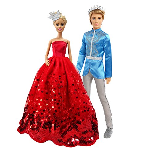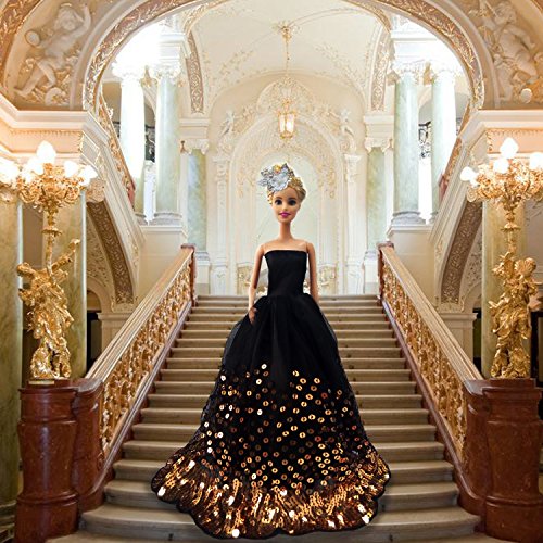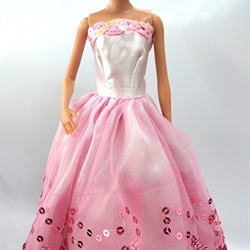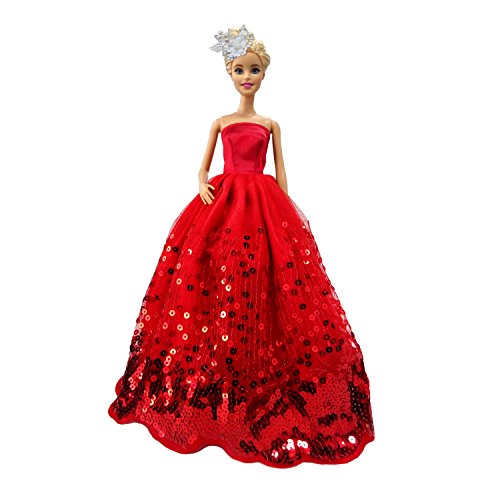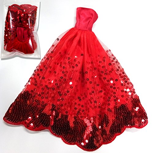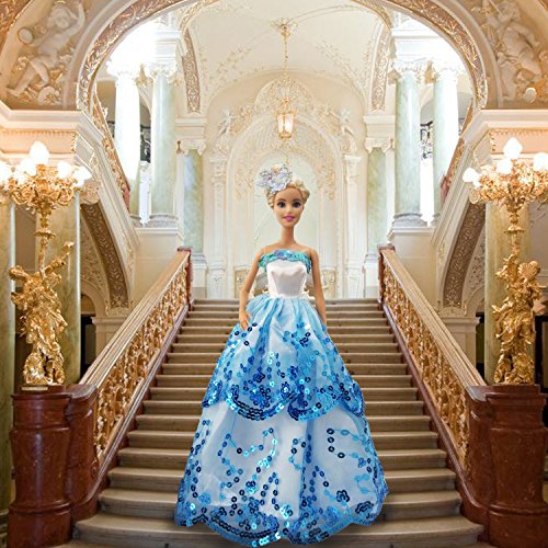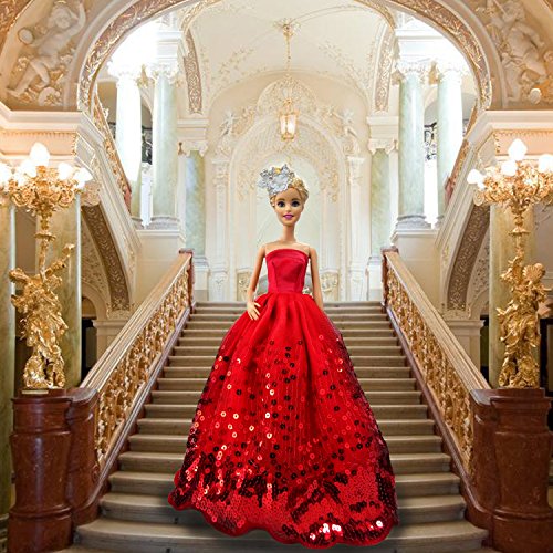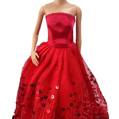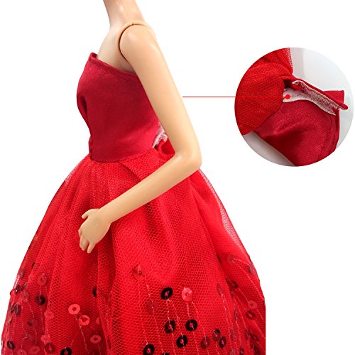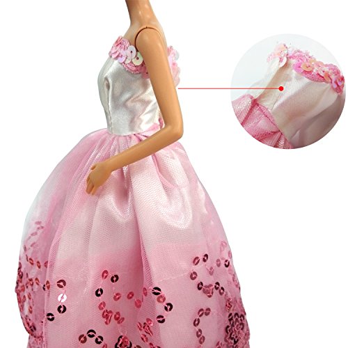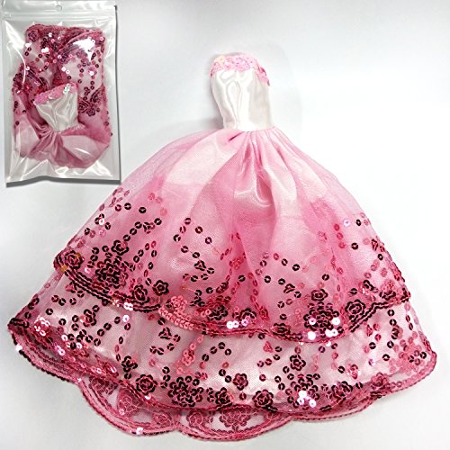 MOONBROOK Prinzessin-Abend-Partei-Kleidung tragt resse Spitze mit Pailletten fur Barbie-Puppe des Madchens Geburtstags-Geschenk