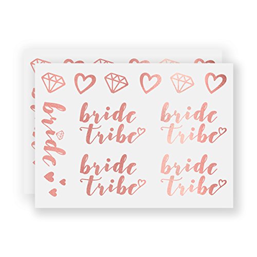 - Bride Tribe Flash Tattoos: metallic temporary rose gold tattoos featuring 8 Bride Tribe, 2 Bride, + diamond ring and heart designs. 24 tattoos total - pass one out to everyone and get the bride party started!