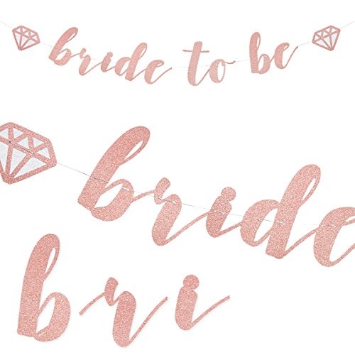 - Bride To Be Banner: thick, rose gold metallic card stock with glitter applique creates the perfect backdrop for any bridal shower decoration - hang the bridal banner on a wall, mantle or outside! Each bridal shower banner letter measures approx. 7" to 4" tall and 5' across + arrives pre-strung :) please note - the letters are not connected, but appear connected when pushed together + hung against a flat surface