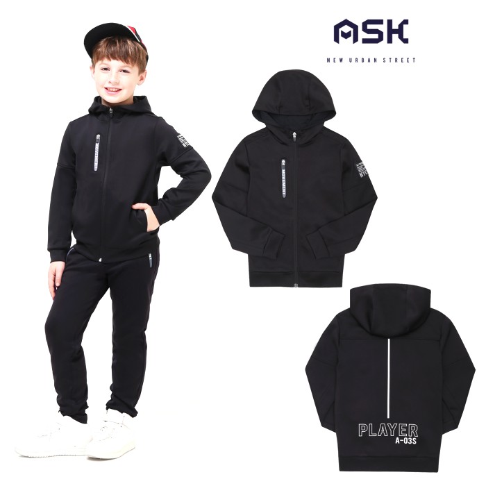폴리 쿠션지 소재의 후드트레이닝 집업.