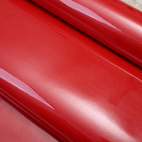 YIZUNNU Paper Wall Sticker Gloss Self Adhesive Vinyl Kitchen Cupboard Door Cover,24x98.43 Inch,Red