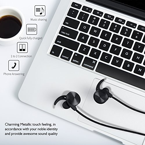 ★MAGNETS EARBUD DESIGN: You can attach the two headphones together when not using, and wear like a necklace around your neck, a convenient way to carry around when you don't need them. ☆☆METALLIC EARPIECES appearance, creating great look on the outside and maintaining steady airflow inside.