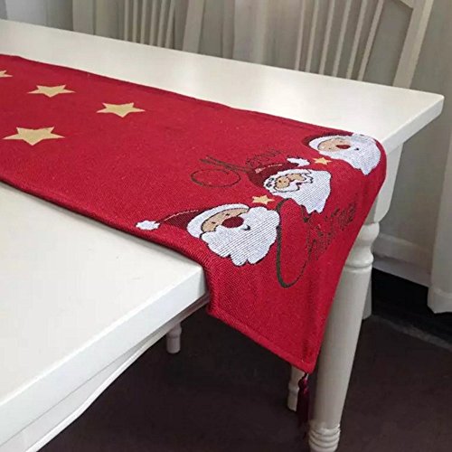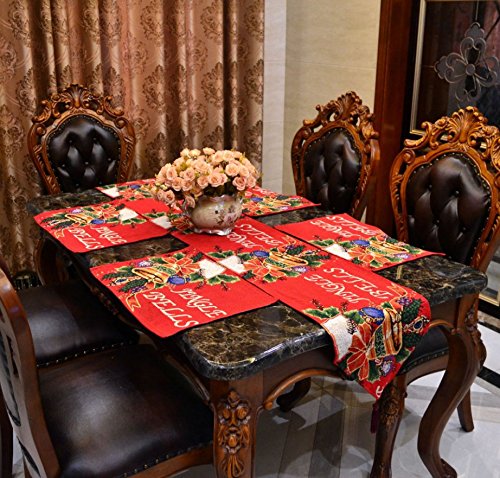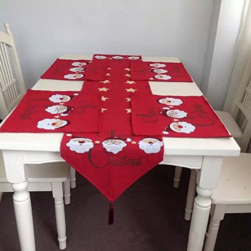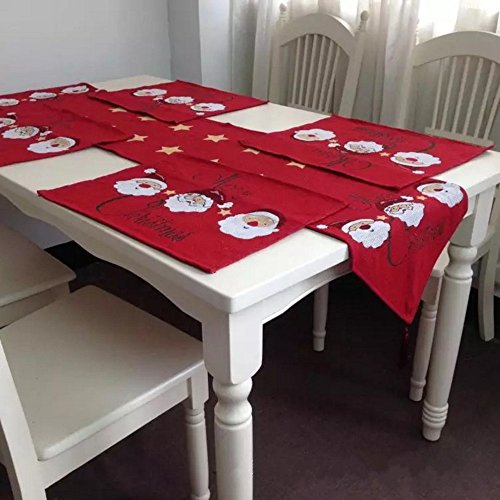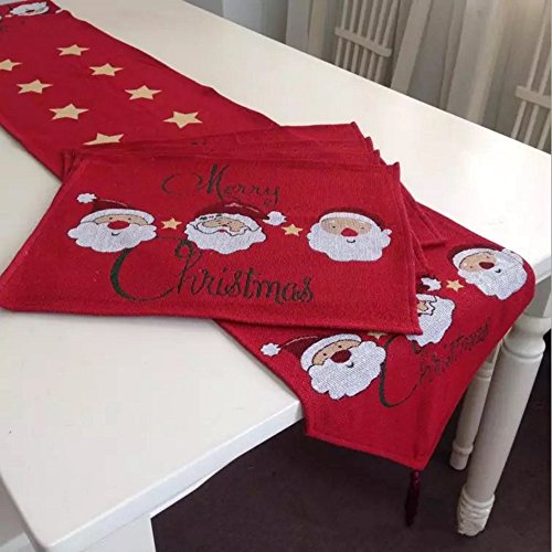 13"x71" Red Table Runner with 4 Santa Claus Place Mats for Christmas Holiday Home Kitchen Dining Décor