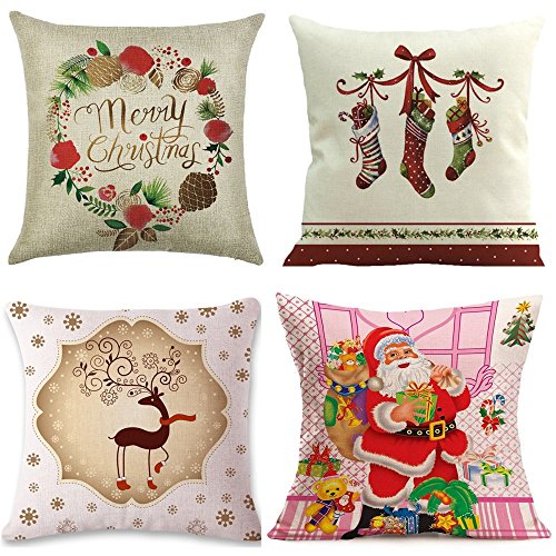 Christmas Throw Pillow Covers, 18x18 4Pack Funny Decorative Pillow Covers Cute Throw Pillow Case Square Cushion Cover Home Decor Gift Set