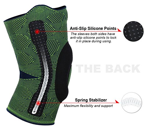 -. Feature : ENHANCE PERFORMANCE: An anatomically contoured pad surrounds the kneecap, which affords a full range of motion, all the while offering optimal compression for target blood flow stimulation and reducing swelling to the knee area. / CREATIVE DESIGN: Unique puller-shaped and Bi-Lateral antiskid silicone gel points desige. Turly 3D Knitting Technology with the air knit fabric! / PAIN RELIEF: Provides aid & relief for Arthritis, Osteoporosis, Tendonitis, ACL, PCL and Jumpers Knee. while relieves muscle stiffness, promotes muscle & joint recovery. / POWERFUL PROTECTION: Provide the best protect for running, jogging, basketball, soccer, football, golf, cycling, tennis, hiking, volleyball, skiing and all sports activities that involve a great amount of stress on the joints. / Please CHECK THE SIZING CHART before placing your order. Approved by FDA, fits left or right knee. There is no risk! We promised refunds without reason for 90 days!