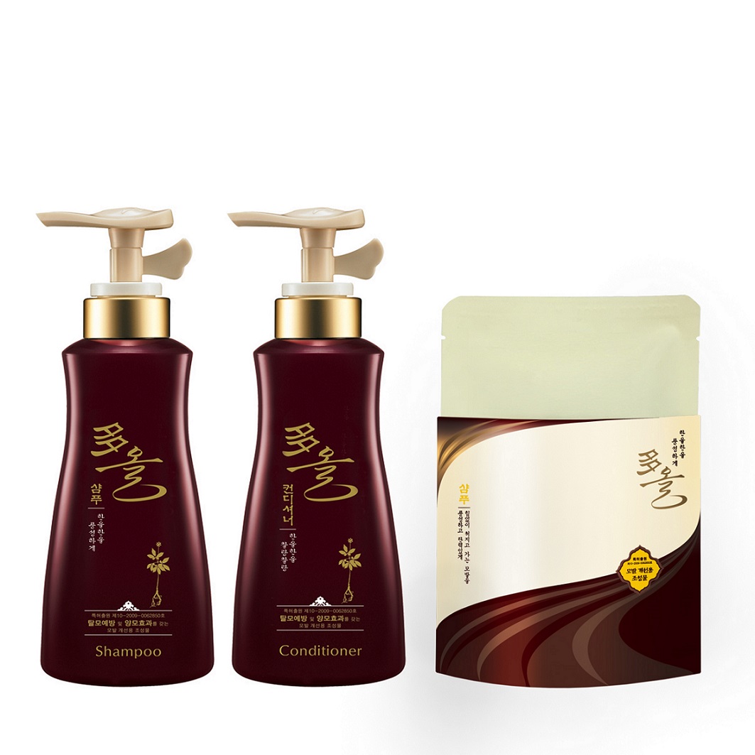 암모늄라우레스설페이트,정제수,암모늄라우릴설페이트,코카미도프로필베타인,코카마이드디이에이,디메치콘,코카미도프로필베타인,C12-15파레스-3,라우레스-23,글리세린,라우라마이드디이에이,구아하이드록시프로필트리모늄클로라이드,부틸렌글라이콜,연꽃수술추출물,지황추출물,괴화추출물,오가피추출물,오배자추출물,순비기나무열매추출물,백지추출물,침향추출물,방풍추출물,복분자추출물,영릉향추출물,망초꽃추출물,클로브꽃추출물,권백추출물,철쭉가지/잎추출물,가자추출물,한련초추출물,주엽나무열매추출물,세신추출물,석류추출물,모과추출물,하수오추출물,호두추출물,매실추출물,카보머,판테놀,산삼배양근추출물,트리에탄올아민,카라멜,디소듐이디티에이,메칠클로로이소치아졸리논,메칠이소치아졸리논,향료