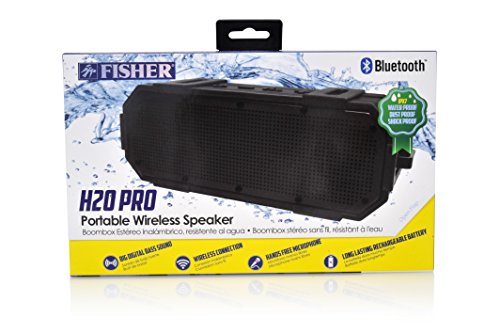 -. Title : Fisher Waterproof H2O Pro Wireless Speaker, Bluetooth Enabled, Built-In Microphone, Shockproof and Dustproof Ultra-Portable Design