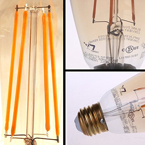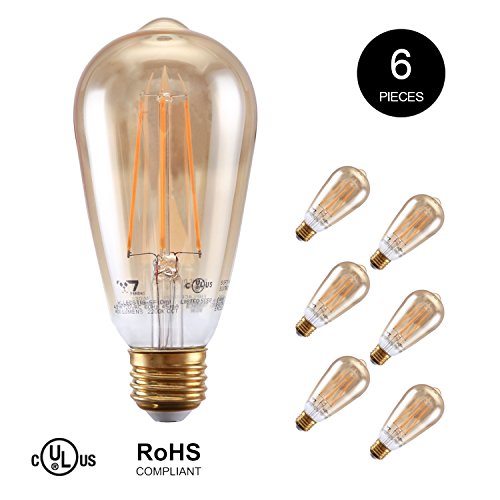 7Pandas Dimmable 4.8W LED Filament, UL Listed Antique Edison Bulb, 2200K 120V 400 Lm, E26 Vintage Bulb for Pendant, Decorative Lighting, 40W Incandescent Bulb Equivalent , 6- Pack ST19 / ST64 Amber