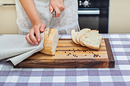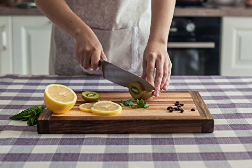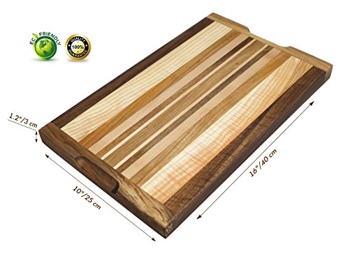 - BEAUTIFUL & DURABLE - The cutting board has a very comfortable size 16 x 10". The thickness of the board is 1.2". This cutting board has 2 flat surfaces for chopping, slicing, dicing, mincing and more. Excellent for chefs, professionals & cooking lovers !!! Please note: Each tree has its own unique structure, so the shades of the wood on the board can be different from the sample in the photo.
