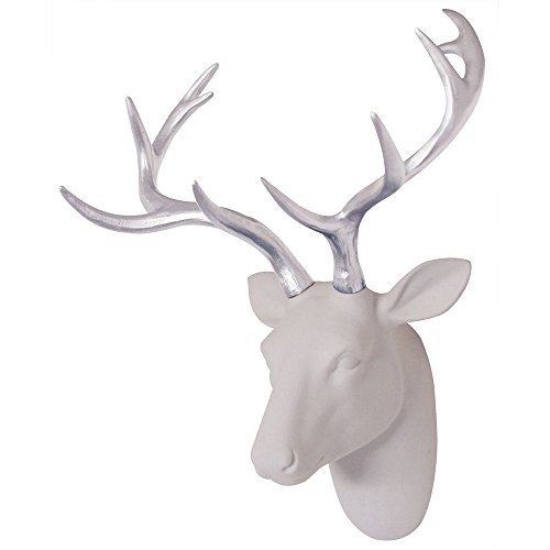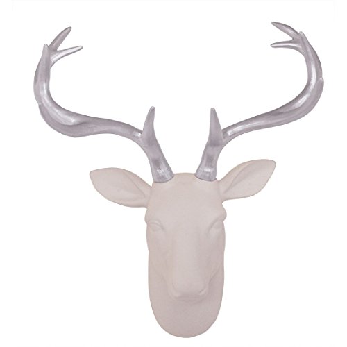 Animal Head Decor Wall Art Deer Sculpture White Flocking Resin Deer Head With Silver Antlers For Wall Decoration Size 16" x 12.5" x 7.5" By Smarten Arts