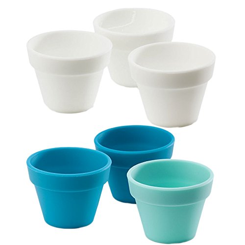 Petite Pots Silicone Mini Cups Set -- Pack of 6 Silicone Baking Pots (2 Colors). (Blue and White (6 Count))