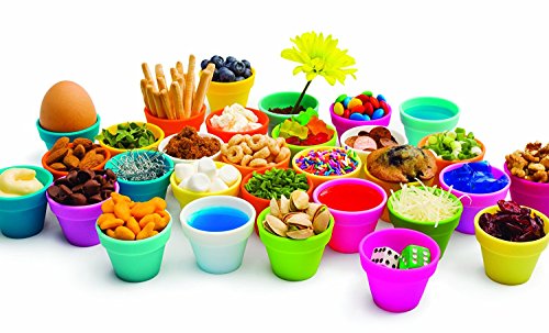 Fusionbrand Petite Pots Silicone Mini Cups -- Set of 6 Silicone Baking Pots (2 Colors). Each mini silicone cup measure 1.6" high x 2.0" across -- the flexible pot that does a lot.